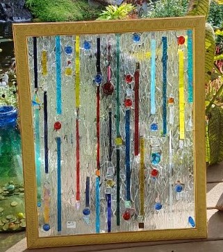 Mixed media and fused Glass artwork and recycling many materials into paintings
