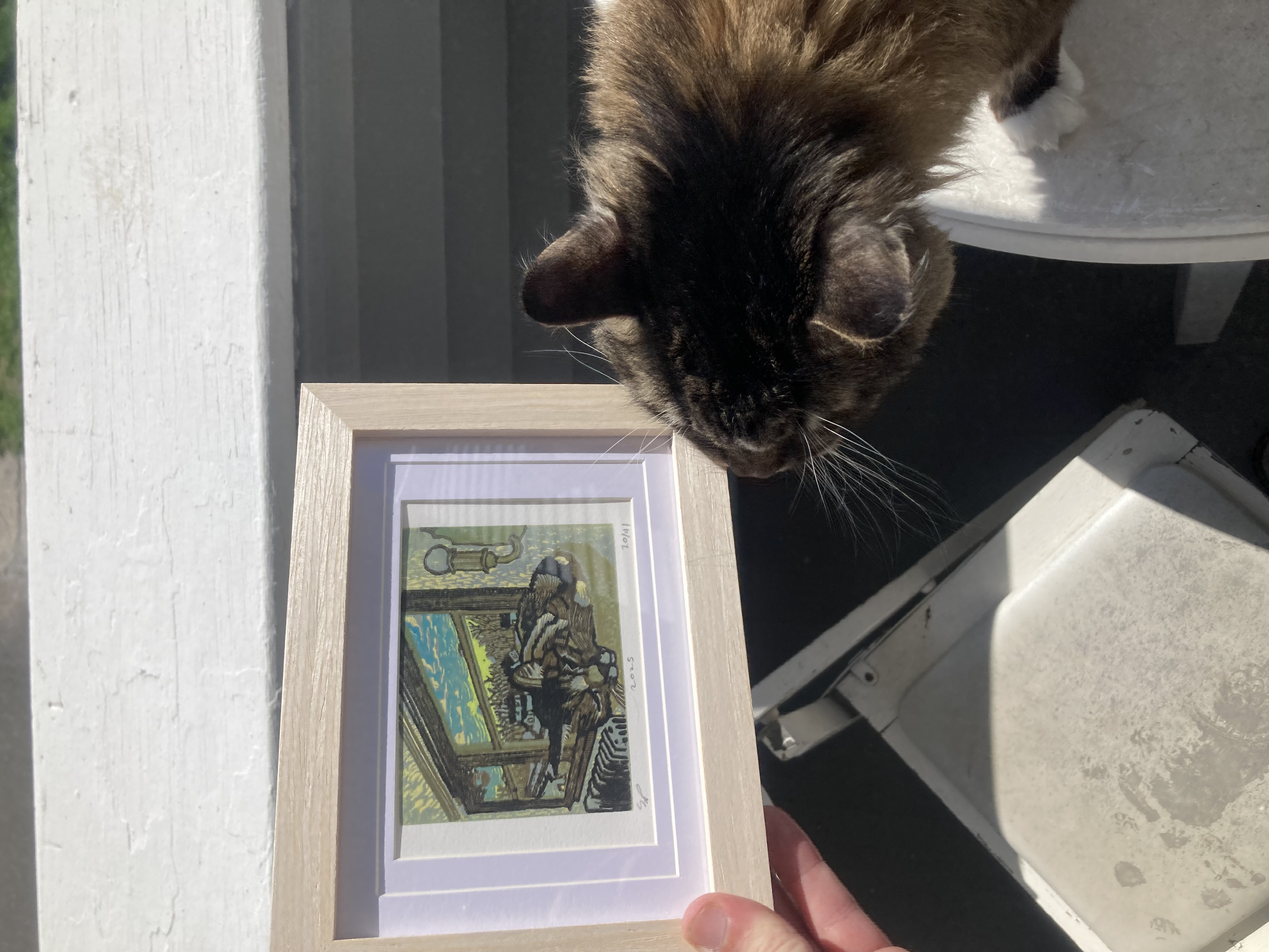After graduating from the Hartford Art School, he began teaching at Old Lyme’s Florence Griswold Museum and discovered the beautiful naturalist art of the Old Lyme art colony and surrounding artists. Taken aback by their beautiful depictions of the CT landscape, Sam dove headfirst into nature inspired landscape art. Additionally, inspired by the many illustrators of his childhood like Bill Watterson, Martin Hanford and James McCaulay, Sam started his own publishing studio called Third Cat Press (aptly named after his beloved cat Chatrois) to self-publish his own children’s books and wood engraving prints. In 2024, he published The ABCs of BATs, an alliterative adventure of nocturnal navigators, to highlight the vast biodiversity amongst his favorite mammals.