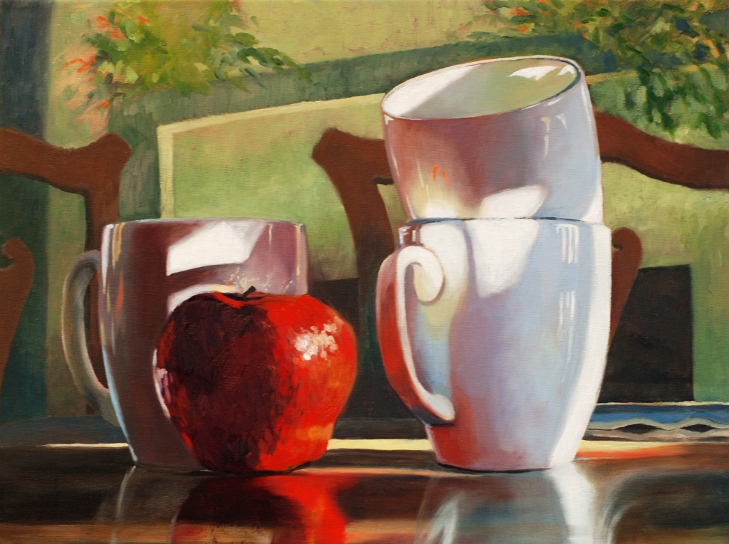 | All in a Row 11x14" $650 | Oranges 10x10" $475 | White Cups & Apple 12x16" $800 |