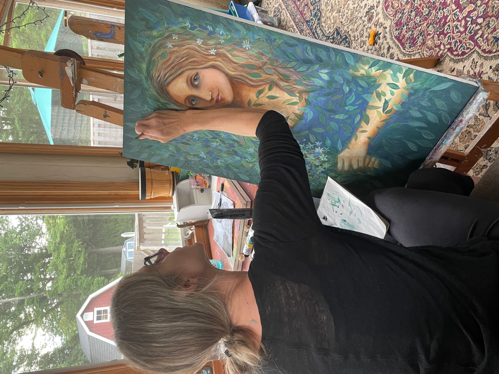 From just a glance at her work, you can see that she finds art therapeutic and a way of revealing her emotions. Ali's inspiration comes from the free-flowing female spirit and the feelings that cannot be expressed with words. Her captivating female portraits show Ali's passion for painting. She paints in acrylic, oil, and watercolor, but her most recent works are done in acrylic and mixed media. Ali has an expressive intuitive process. She starts with a rough charcoal drawing and then lets her intuition guide her through the painting process.