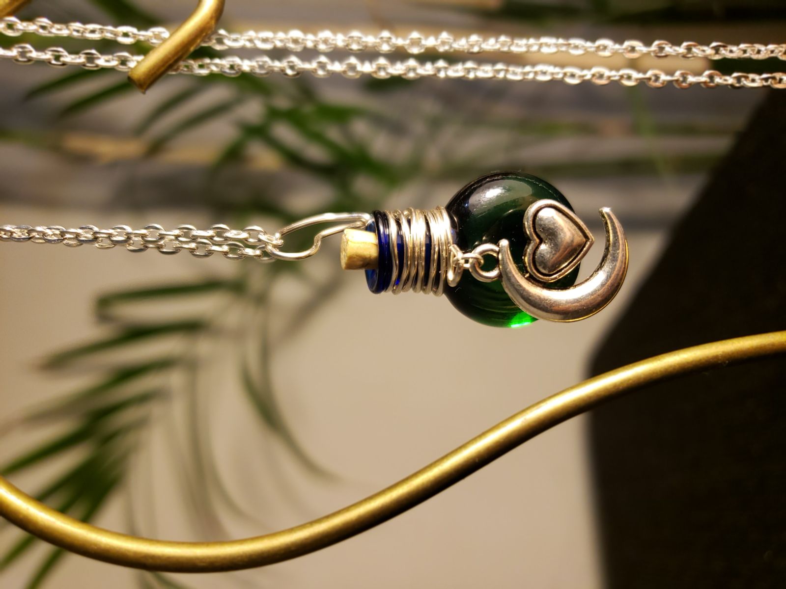 Description: Wire-wrapped essential oil diffuser necklaces made from glass bottles