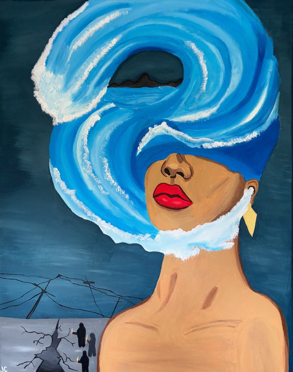 STATEMENT: My work explores the tension and harmony between the heart and the mind, as well as the interplay between resilience and vulnerability, logic and intuition. Through surrealist imagery and symbolic elements such as trees, butterflies, and vibrant natural forms, I give shape to the inner conflicts and transformations that define human experience. I am drawn to surrealism because it allows me to move beyond the literal and into the emotional, creating visual metaphors for strength, growth, and identity. My practice is deeply personal, but it also speaks to broader themes of cultural resilience, healing, and the pursuit of wholeness.
