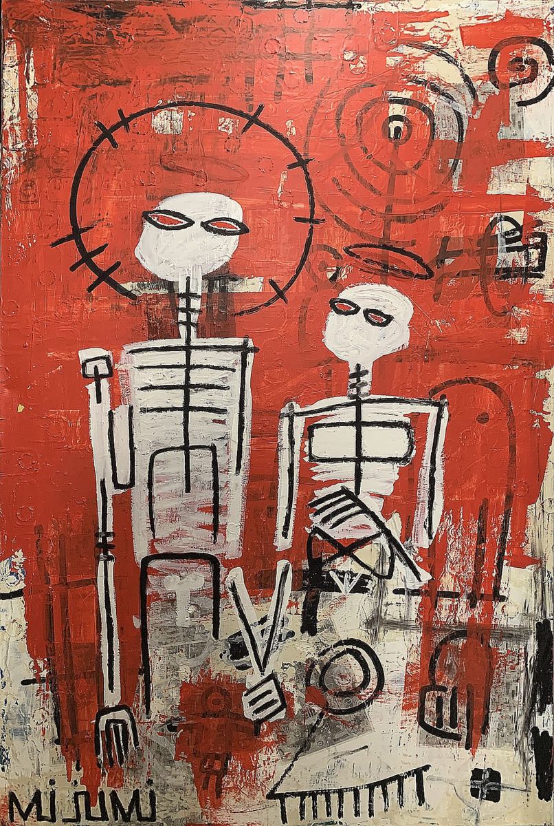 MIJUMI Michael Justino Michaud (MEE) + (JOO) + (MEE) B: 1979: Hartford, CT L: Enfield, CT S: E.C.S.U. (BA Studio Arts – Drawing/Painting lol) ?: What else do you need to know? My Art explores the tension between CHAOS and ORDER through a NEO-EXPRESSIONIST lens. I use raw marks, fragmented words and recurring symbols to create visual languages that feel both immediate and layered with history. Influenced by the ENERGY of Jean-Michel Basquiat, Cy Twombly, and others, my practice reflects memory, displacement, and the search for meaning in everyday noise. Each piece is not only an image, but an artifact of survival — an attempt to translate the intangible into something collectors can hold, study, and live with… enjoy