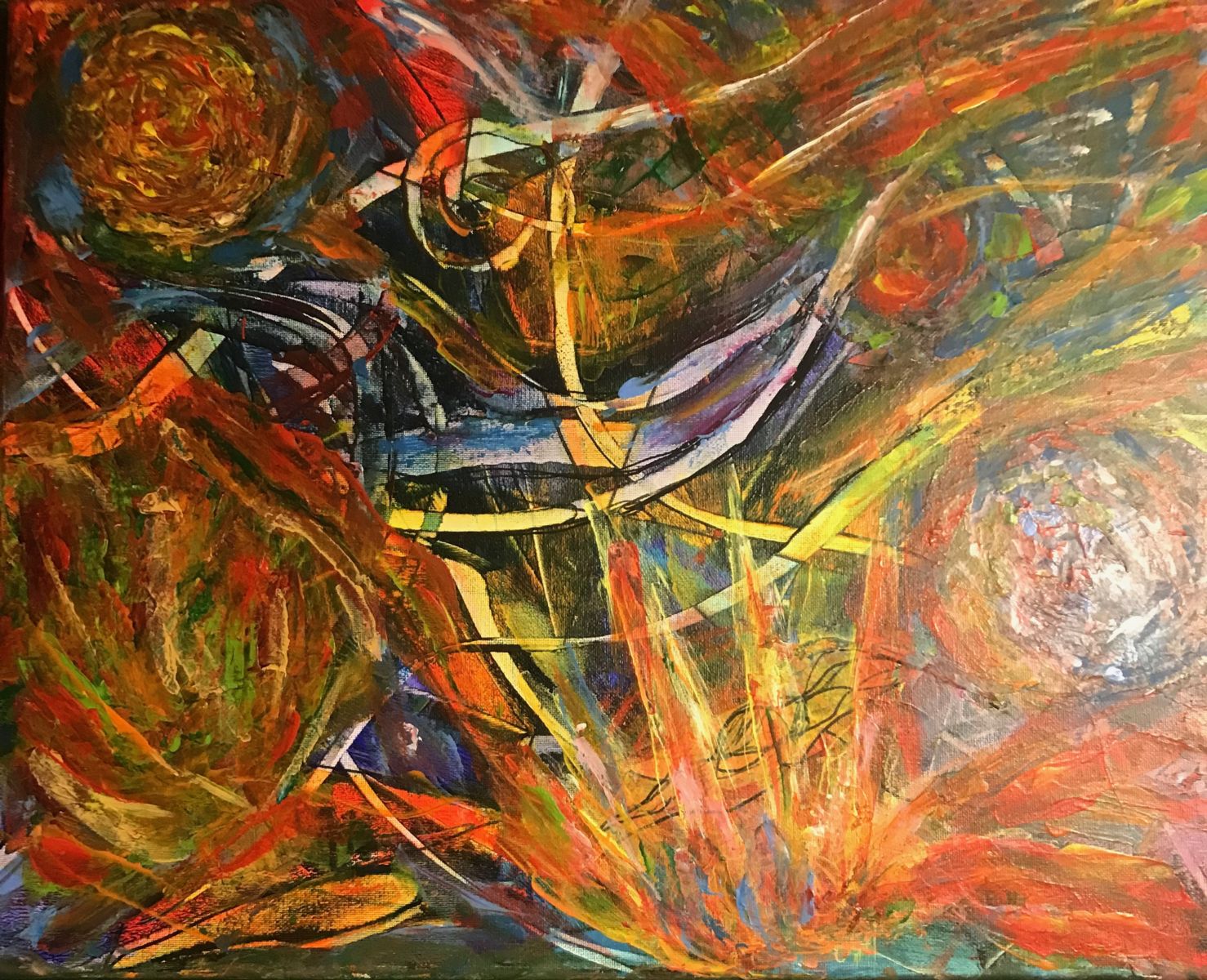 Nature, particularly the varied shapes, colors and textures of trees and flowers, provide imagery that inspires my paintings. Initially, I looked at calendar photographs of nature and used these to help me create paintings that closely resembled the photographs, Recently, I have begun to rely on mental images that may be totally abstract, or loosely based on nature, to create paintings that express emotions, both known and unknown, which hopefully also cause the viewer to have an emotional reaction. I have always loved art, and take classes from time to time to challenge myself to try new ways of painting and exploring color. as I continue my creative journey.
