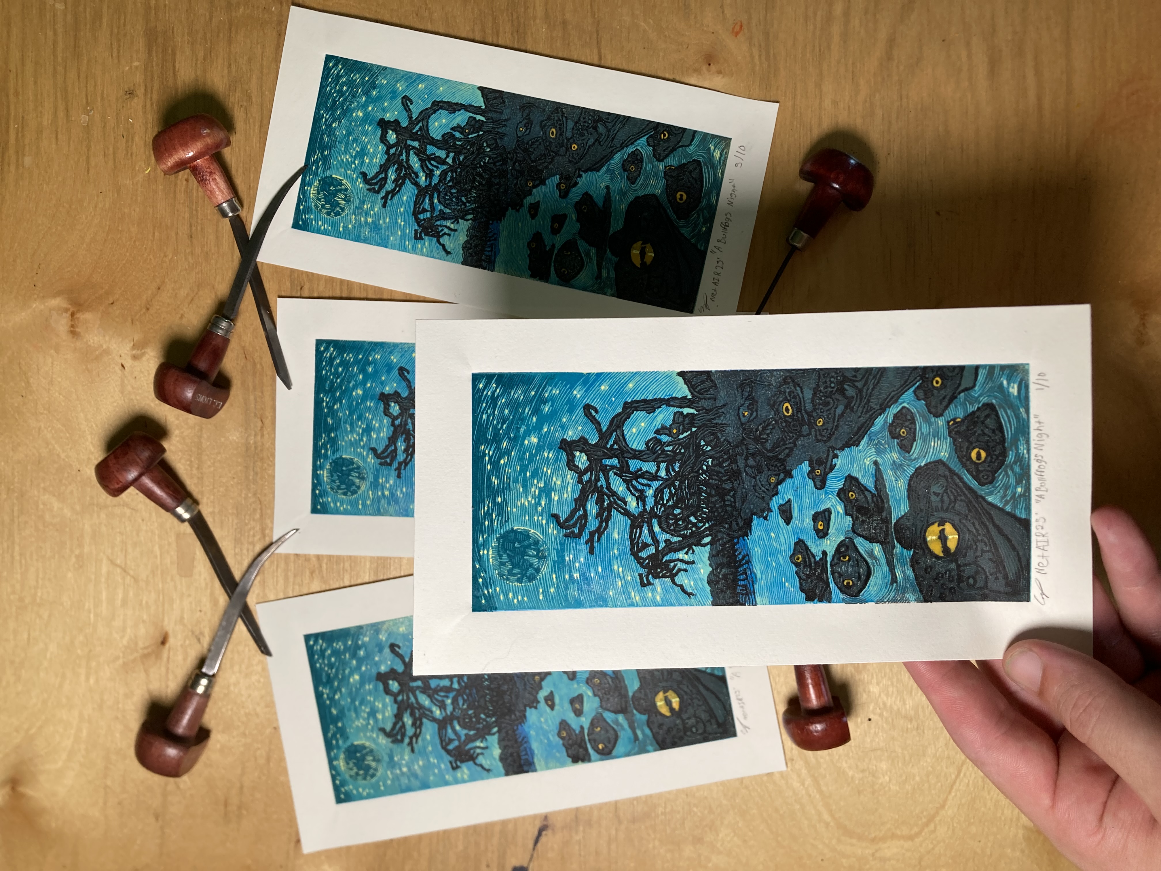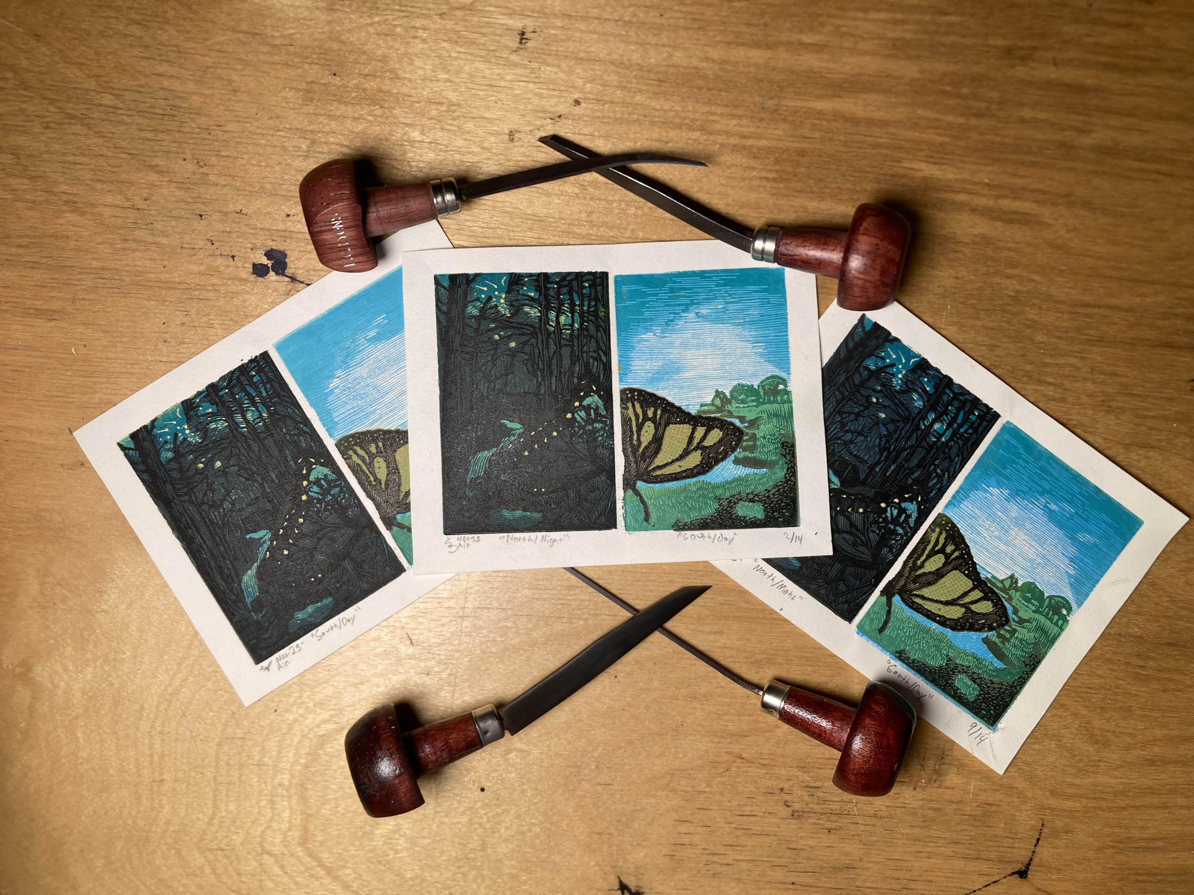 Description: Hand Carved Hand Printed wood engravings and self published childrens books