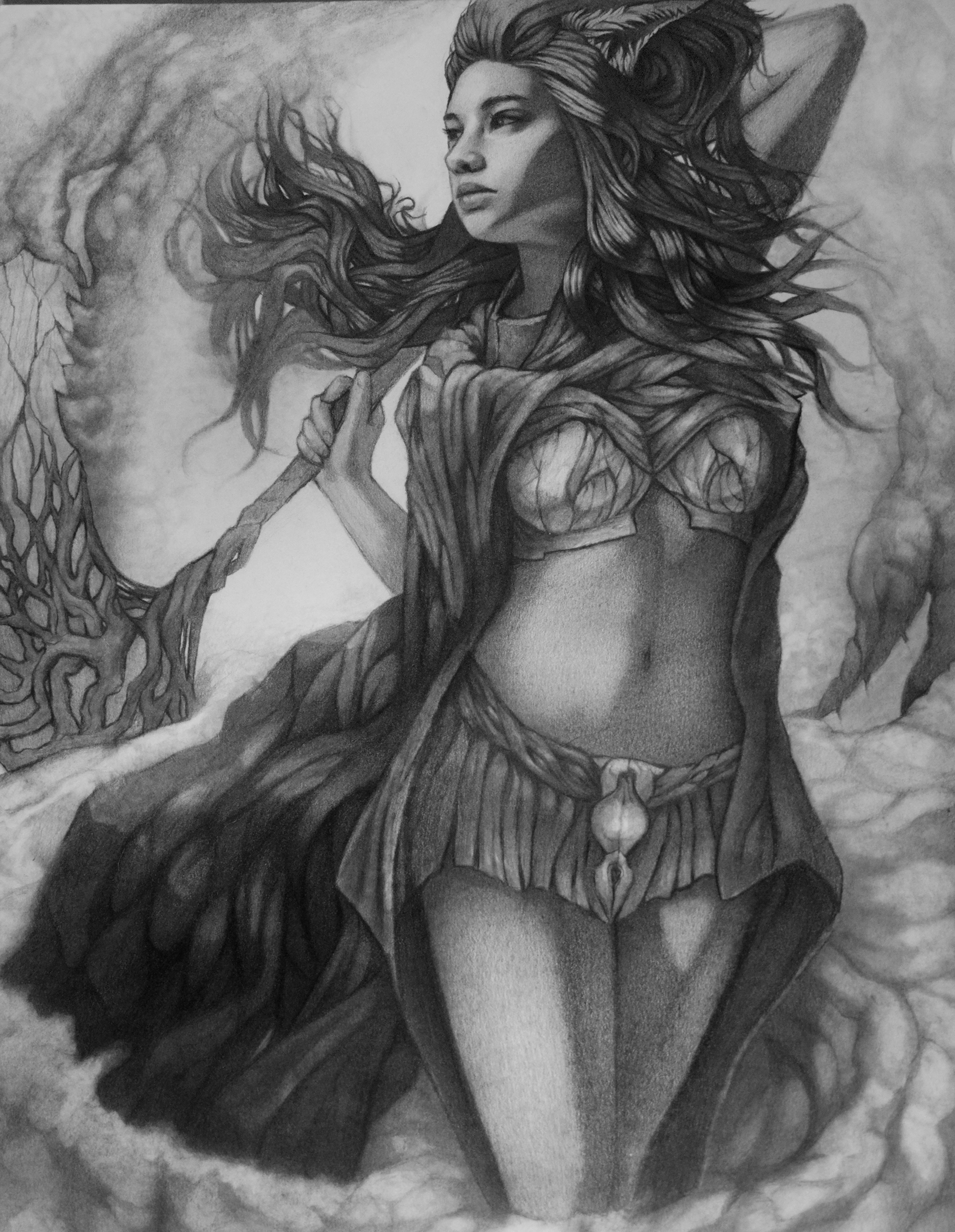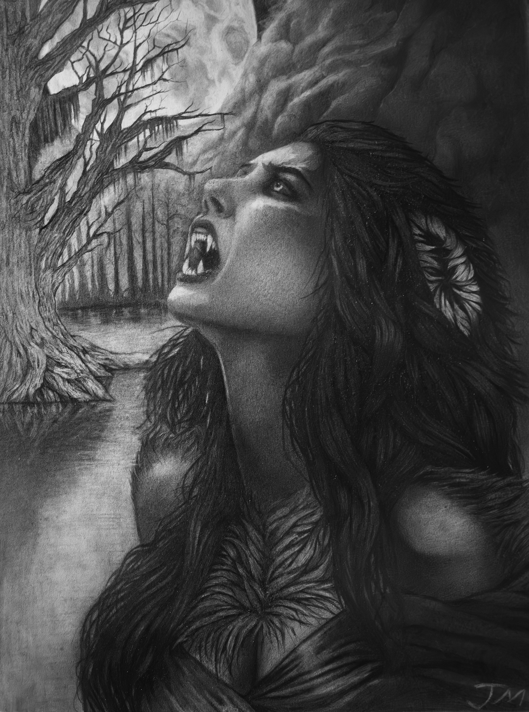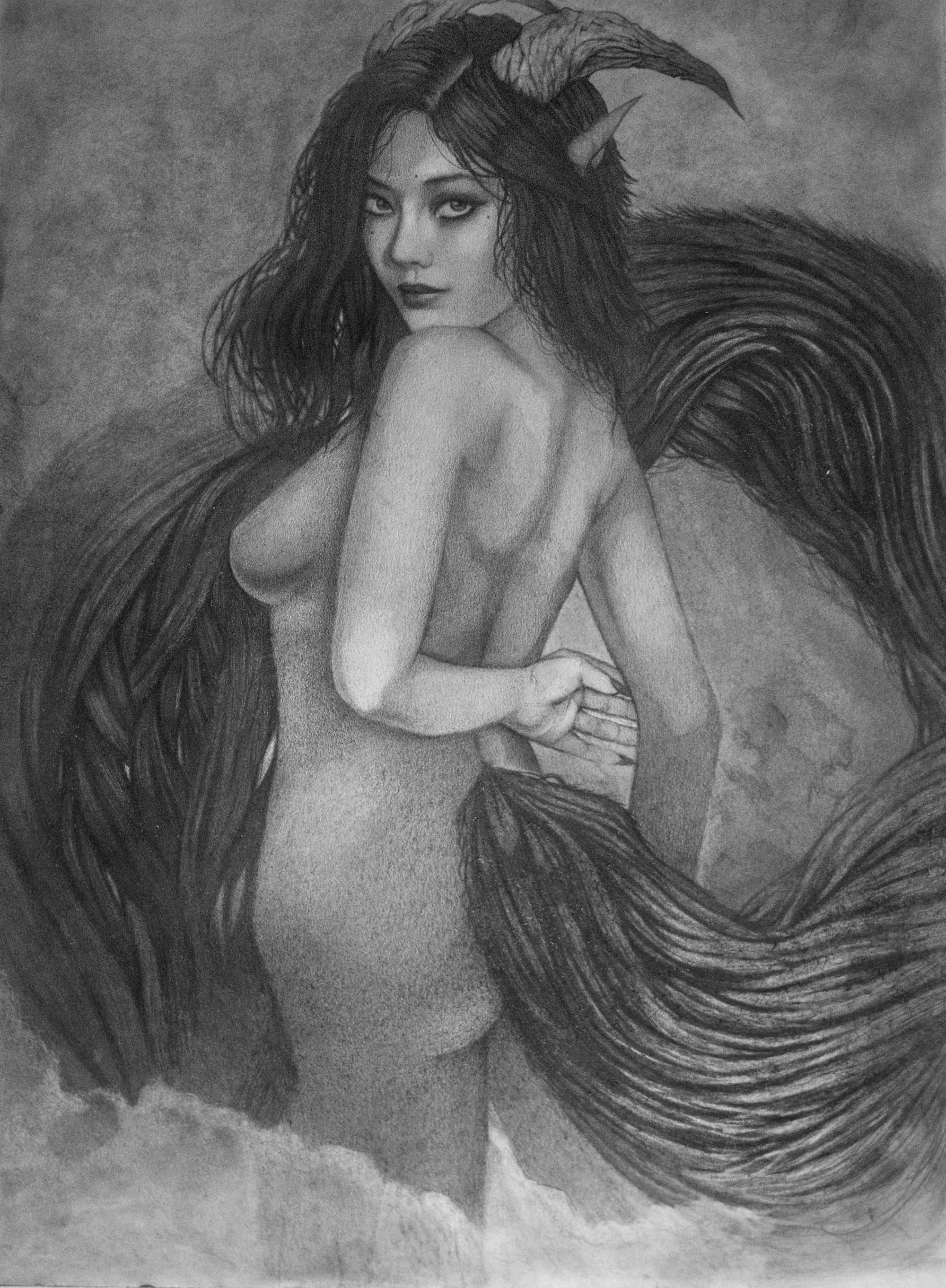 Description: Black and White Fantasy characters and monsters with Graphite and Pen and Ink