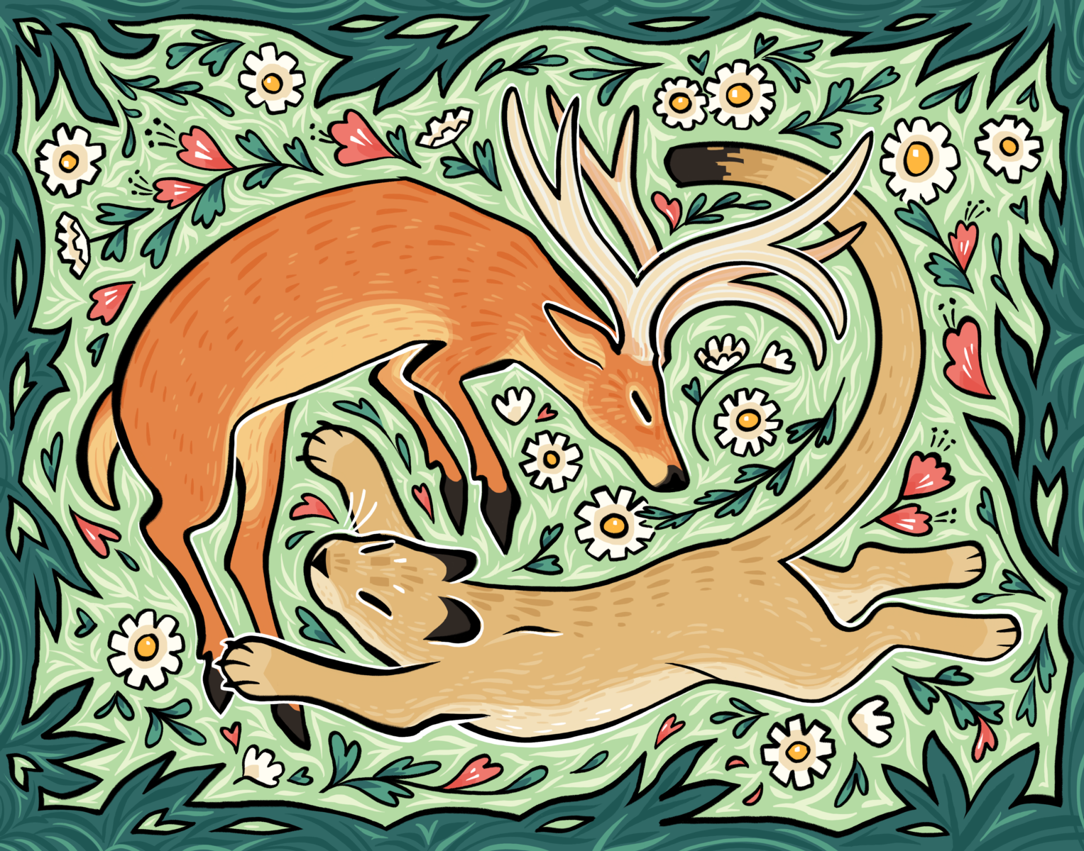 I’m a freelance wildlife artist from Manchester, hoping to share my curiosity and love for the natural world through colorful pictures. Stylistically I am interested in color, line, and pattern; I’m inspired by engravings, printmaking, tattoo styles, textiles, and the beautiful New England fields, forests, and swamps I like to explore.