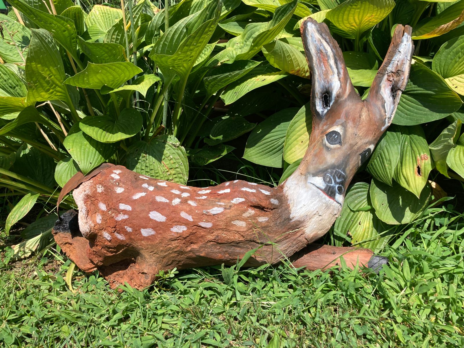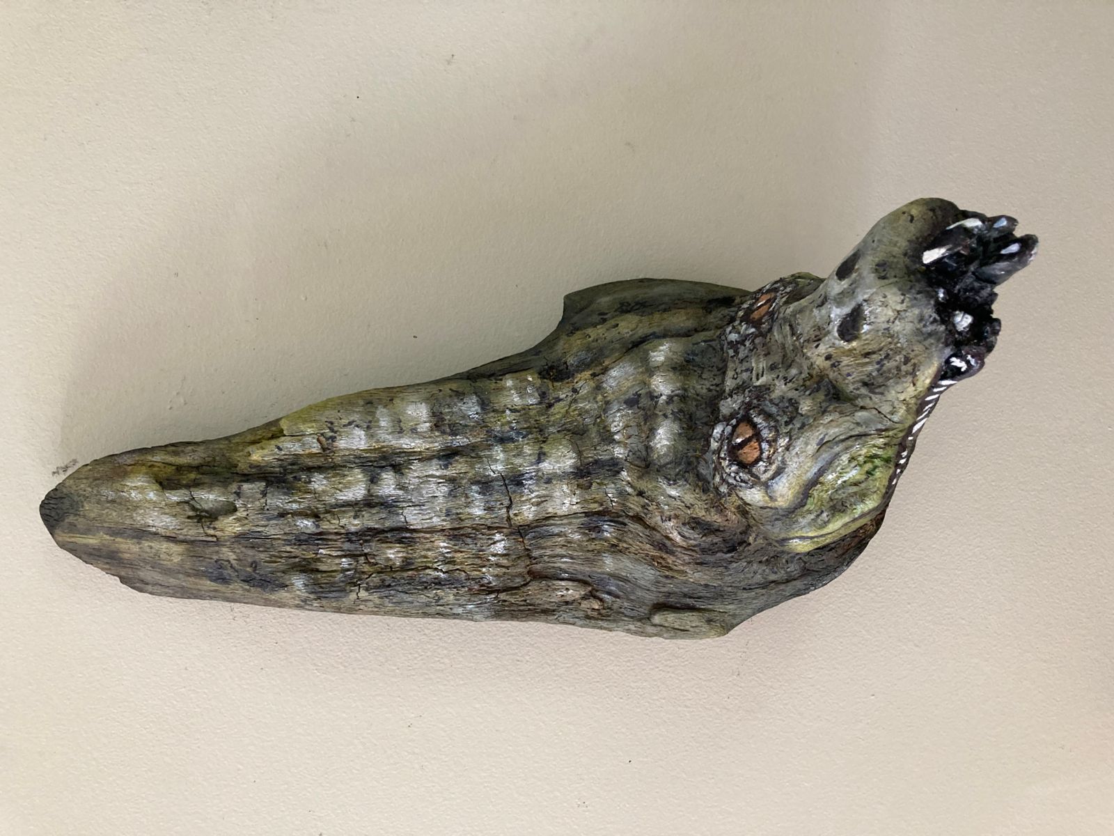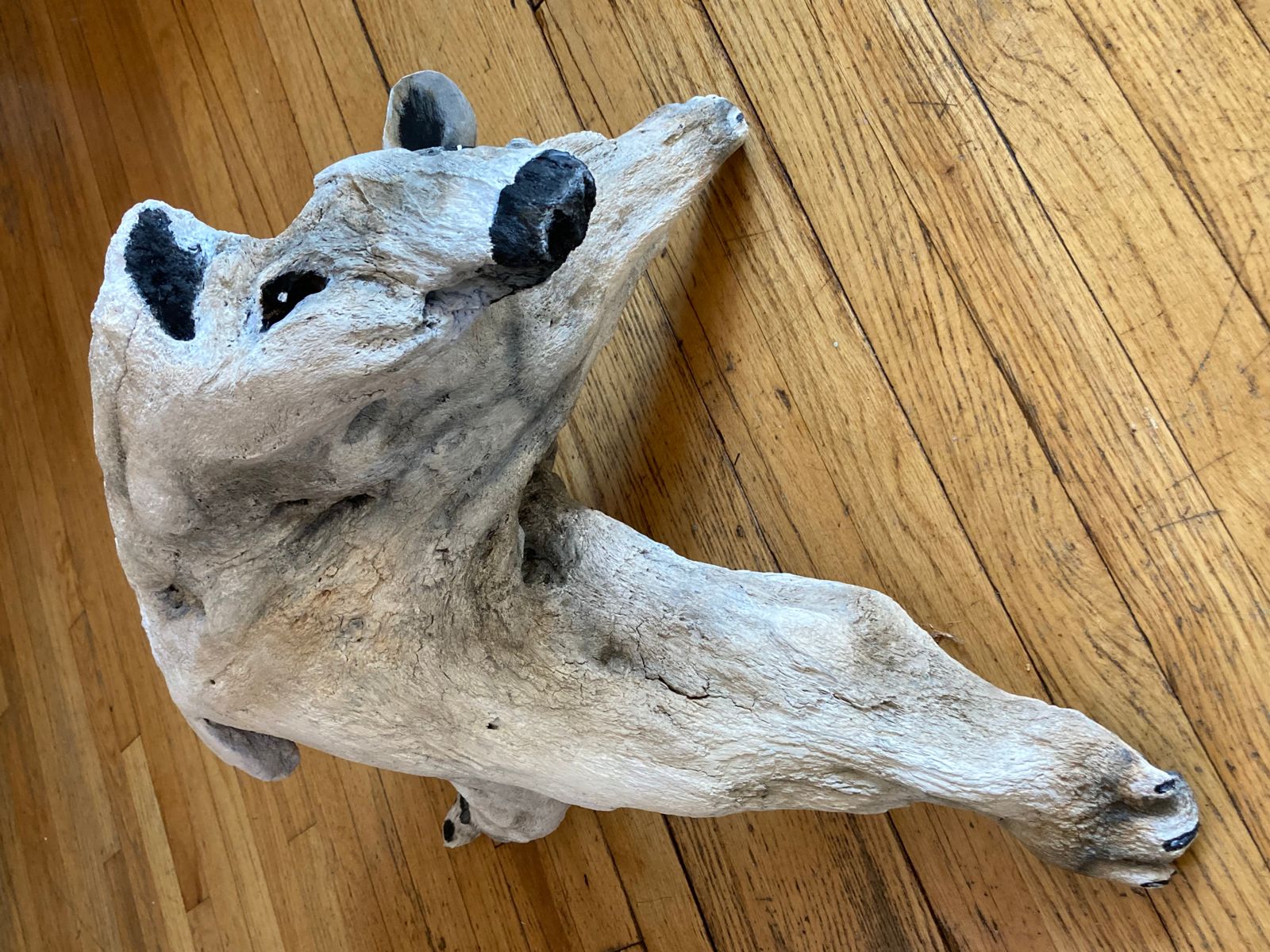 Joan Pollak, a Newtown, Connecticut artist whose work appears in local galleries and private collections, specializes in animal art created from locally sourced, hand-painted driftwood. She looks to each piece of wood to reveal the animal hidden within, then she helps it emerge to express its unique, often whimsical personality. The result: one-of-kind hanging and freestanding animal sculptures – ranging from those of the barnyard variety to the African veldt to the tip of Antarctic – that are preserved beneath layers of polyurethane for display both indoors and out.